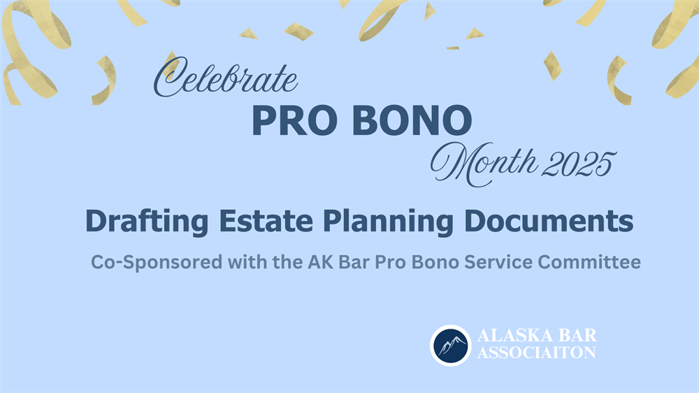 Learn to draft a simple will, power of attorney, and advance health care directive in preparation for volunteering at the Elder Appreciation and Wills Clinic (EAWC) on October 17, 2025, including issues unique to drafting wills for Alaska Native clients. Participation is required for EAWC volunteers without prior estate planning experience and offers a valuable overview for any attorney beginning to practice in this area. Sign up to volunteer for EAWC here.